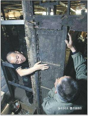 李文新辗转多地收来的清朝老木门。
