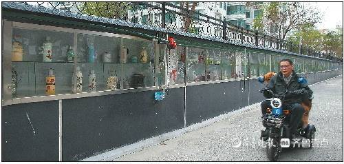济南槐荫区安澜北路舜亿佳园小区西侧有面“网红墙”,500米长的墙上定制了玻璃橱窗,里面整齐的码放着各种各样的老物件,用草编成的蓑衣、上世纪八九十年代的电影海报、旧时的农具、斑驳的铜镜、老式门牌、几十年前的儿童玩具……来往行人驻足于此,仿佛时光倒流,回到过去。