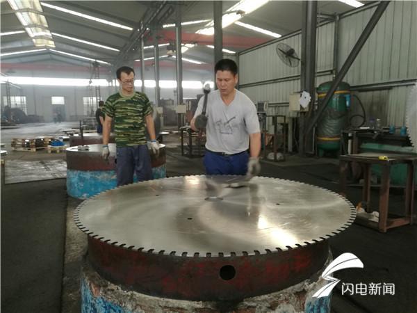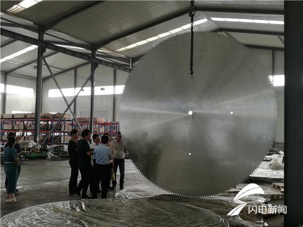 “这是我们厂的新产品,直径4.6米,目前国内就我们一家能生产。”昆宏工具总经理沈如凯介绍,锯片越大,生产工艺越复杂,要求也就越高。大直径的锯片主要应用矿山开采,锯片直径大降低能耗,提高效率。