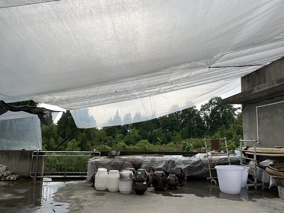4月22日中午,澎湃新闻来到重庆市忠县马灌镇白高村。这里道路宽敞,两侧的庄稼长势好,加之刚下过雨,空气特别新鲜。 立在路边的“毛妈妈土特产”的招牌上提示着目的地就在附近。沿着支路前行50米,经过一小片鱼塘,再爬一段水泥斜坡,就是“毛妈妈经营部”的门口。