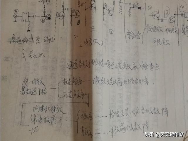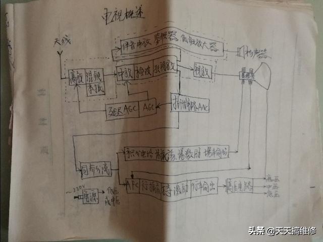 学习维修的第一台电器,是一台还是木箱外壳的黑白电视机,那个时候的电视,买回来打开箱子里面都会有一张厂家配好的电路图,以便出故障的时候,供维修技术员参考,刚学的时候很好奇,喜欢图图画画,买了几本材料纸都画满了很多电器电路组成的轮廓图。