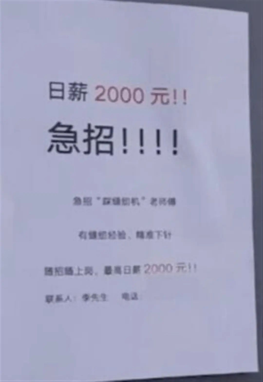 急招缝纫机老师傅日薪2000元?业内人士回应