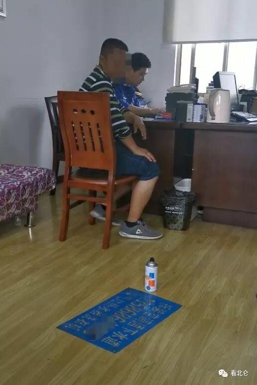 5月17日下午,新碶综合行政执法中队执法人员在巡查中发现王某携带喷涂工具在鸿翔景苑小区内张贴小广告。王某所驾驶摩托车上装有一袋粘贴式广告纸和一个喷涂模板及一罐喷漆。 现场取证后,执法人员将其带回中队接受调查询问。