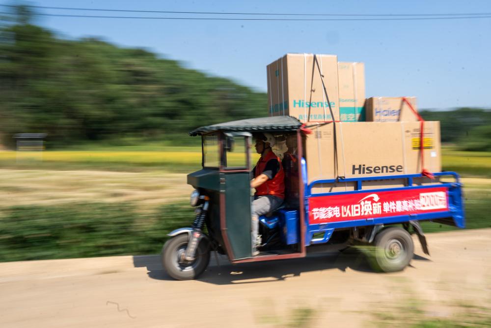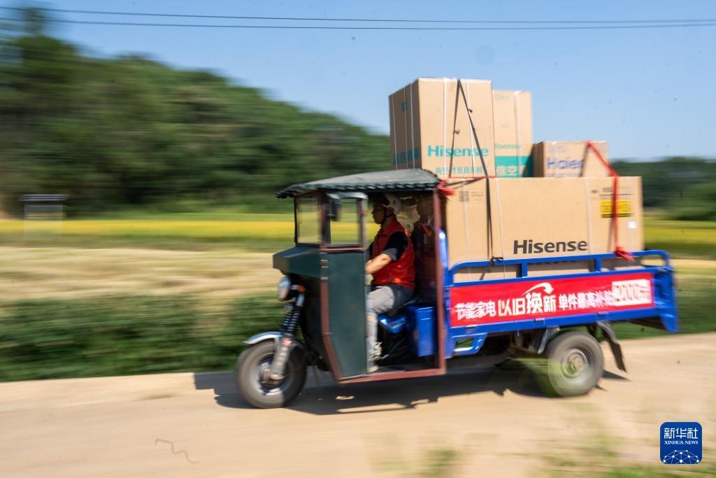 在湖南省岳阳市汨罗市屈子祠镇双楚村,彭坤、彭建华夫妇家中有一台使用了近十年的32英寸液晶电视机。今年,在以旧换新政策的吸引下,他们决定更换一台更大更好的电视机。根据实际需求和个人喜好,在反复对比后,他们换购了一台75英寸的新款液晶电视机。旧电视在新机送货上门时被当场回收,叠加各种补贴后,实际成交价较厂商定价优惠了近30%。