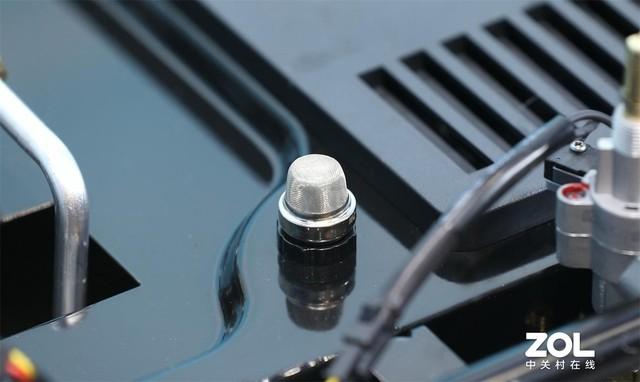 另外,为了应对燃气灶内部管路的燃气意外泄漏的风险,美大飞天蒸烤一体集成灶在灶台面板中部设置有一个智能气敏感应防护,即燃气泄漏传感器,当面板下方空间内燃气浓度到达设定阈值时,系统就会自动启动风机并高速运转,将所泄漏的燃气排到室外,以保障家庭用气用火的安全。