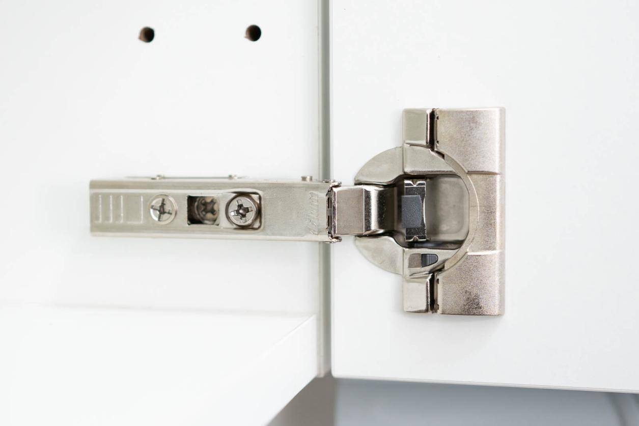 ▼并且宜家的厨房橱柜用的五金都是百隆的,铰链是全扣件安装,非常快捷,后期维护徒手就可以拆下。