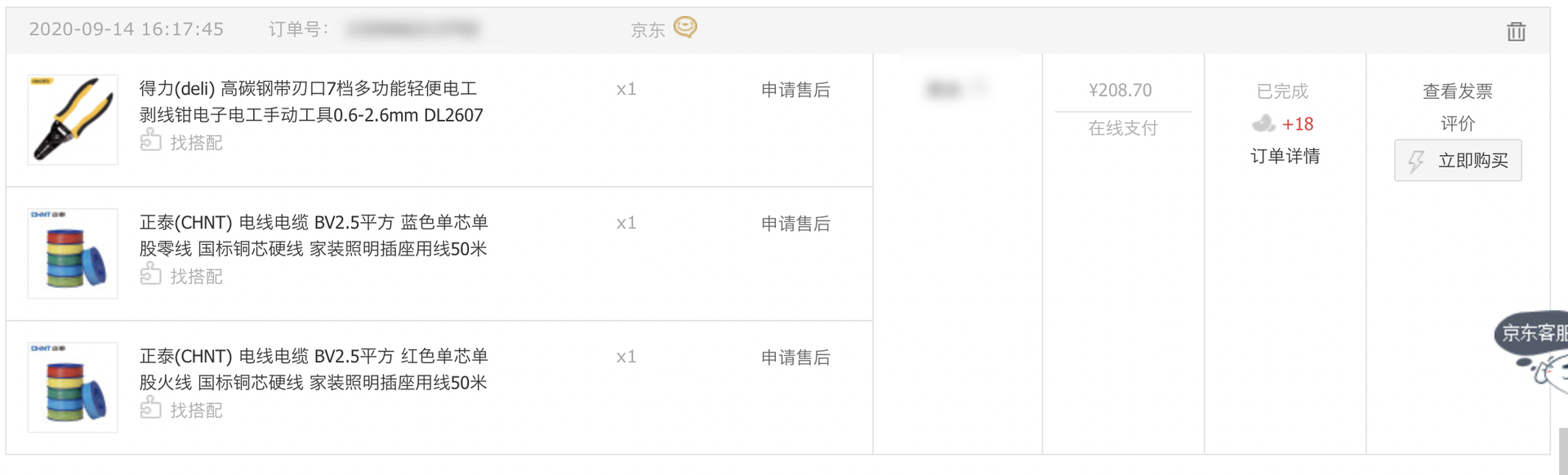▼像电线、开关面板这些比较重要的我都是在天猫和京东自营搞定的。而一般的辅料如线管这些在某宝的c店会便宜很多。