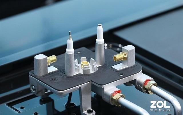 在工作时,气源通过进气口到达主气管,然后分流至两个灶台开关(电磁阀),之后分别通过两路铜管和分火器,将燃气配给燃烧器的外圈和中央部分,以达到燃气充分燃烧的目的。