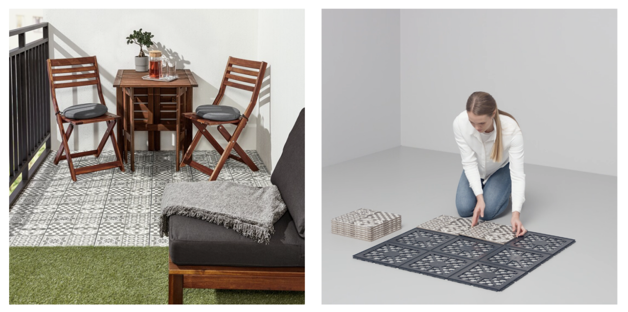 ▼墙面的部分,用宜家的哈格比门板直接贴在旧瓷砖上,代替了。而地砖部分用了宜家的户外地砖,直接放在原有的地砖上,也不用铺贴,平时用吸尘器+拖把清理也很方便。就是花色方面就这一种,是30*30的小方砖,也挺好看的。