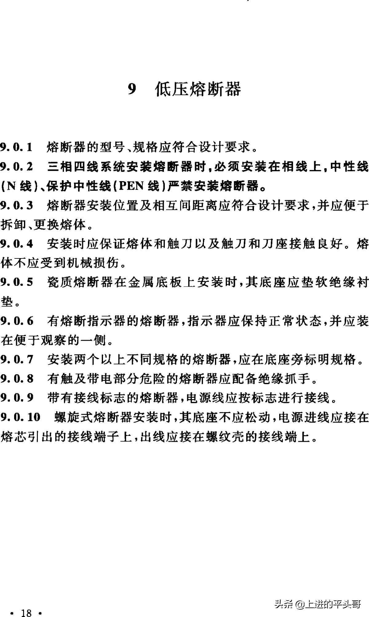 9 . 0 . 1 0 安装螺旋式熔断器时,应注意将电源线进线接到瓷底座