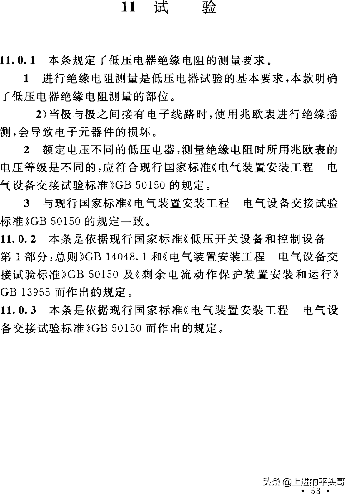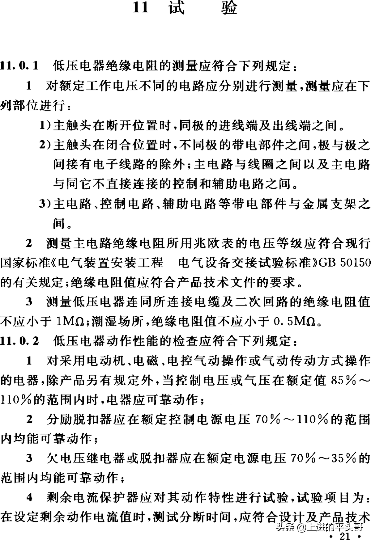 11.0. 1 本条规定了低压电器绝缘电阻的测量要求。