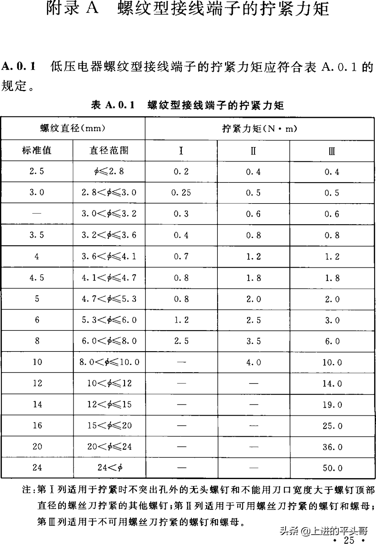 7.增加了“附录A 螺纹型接线端子的拧紧力矩”,“附录马接