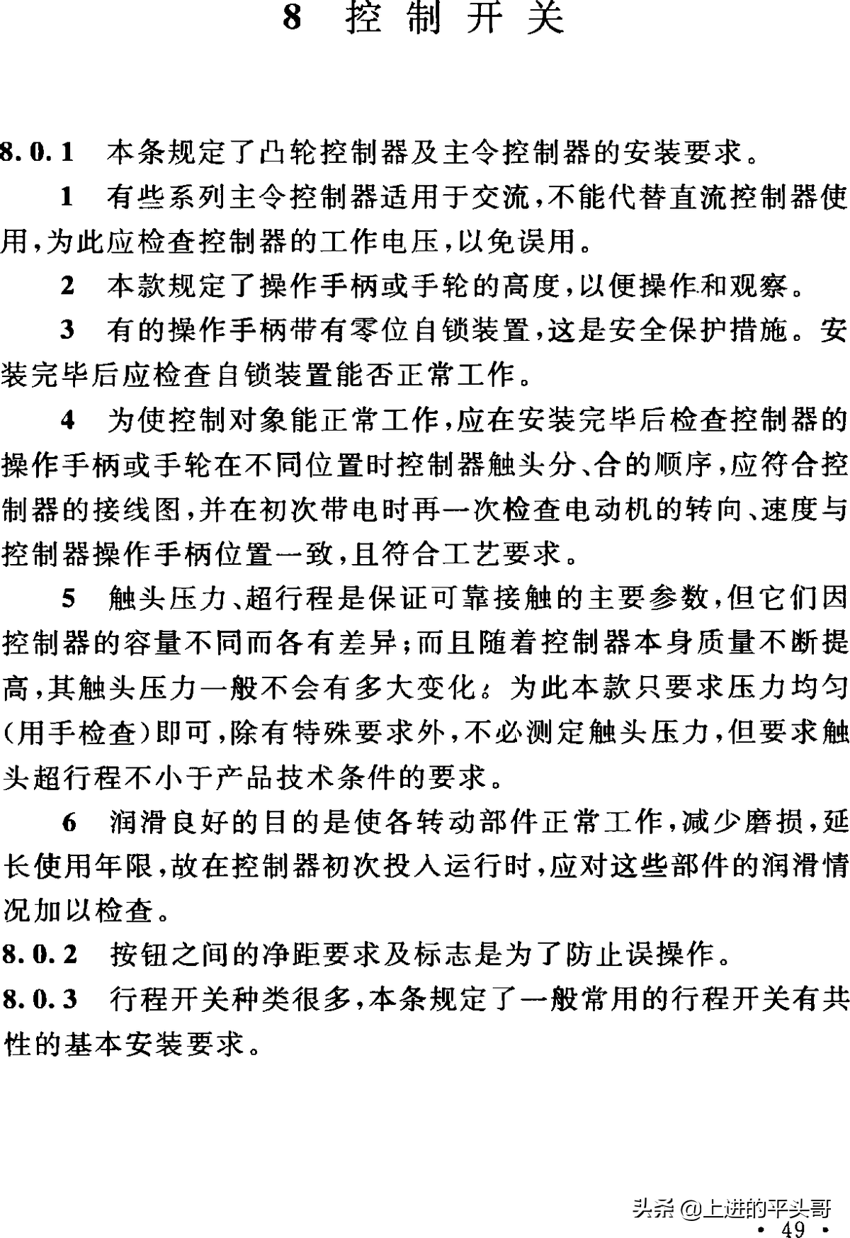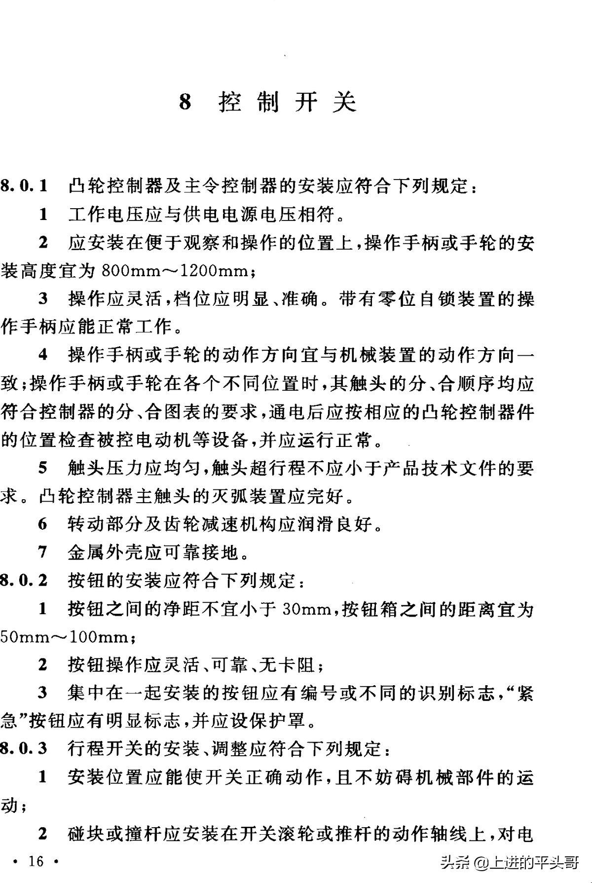 8 . 0 . 1 本条规定了凸轮控制器及主令控制器的安装要求。