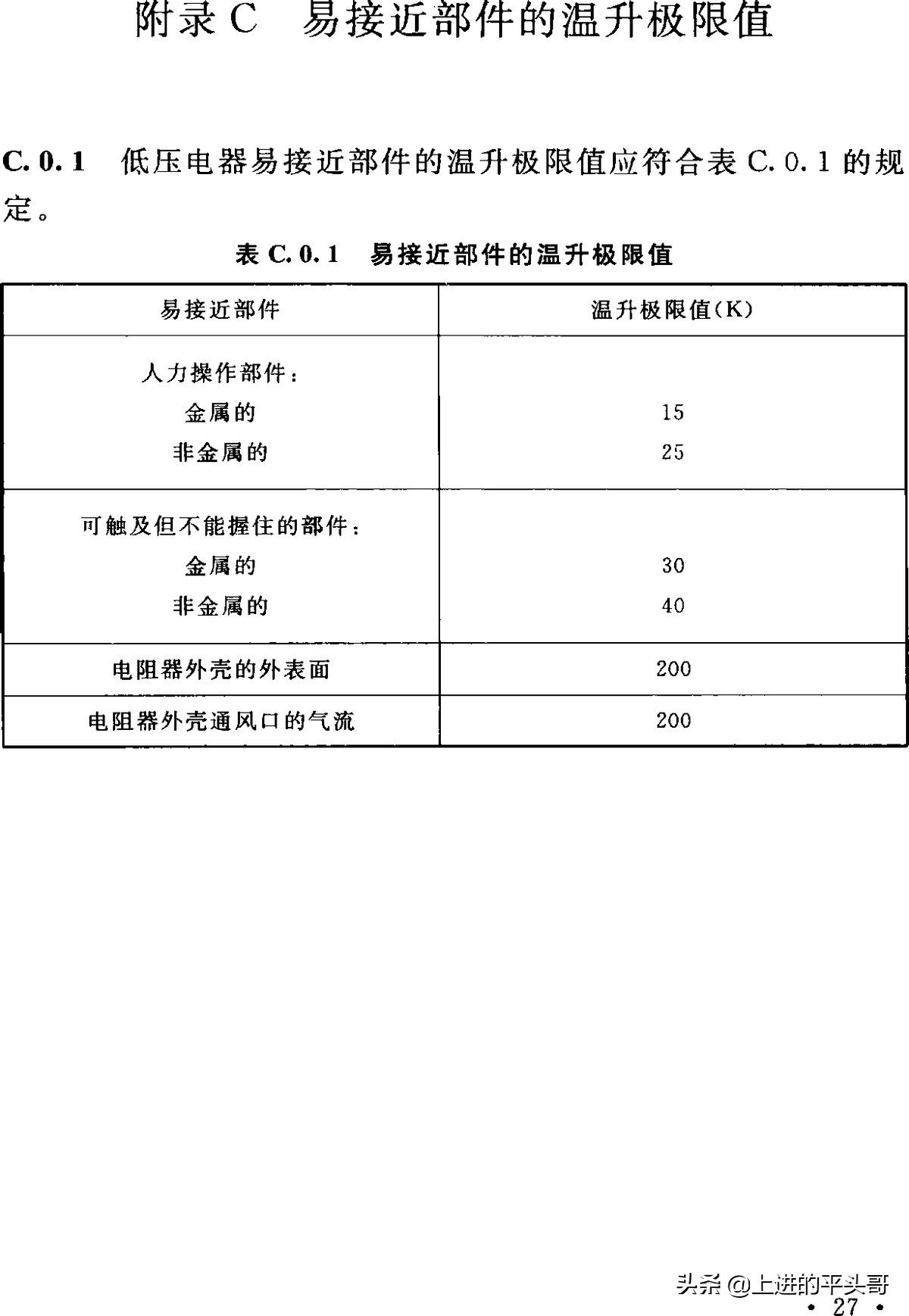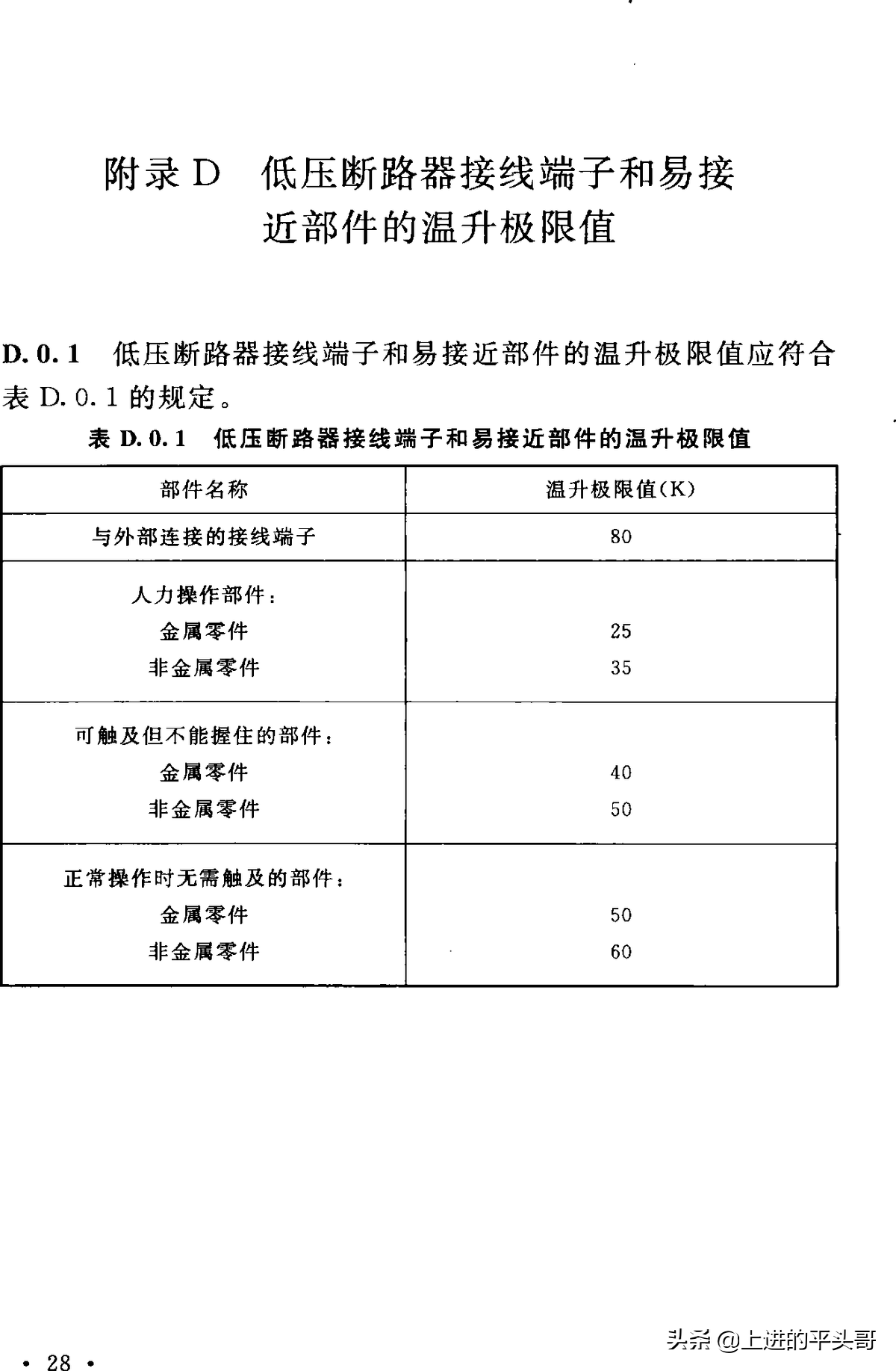 线端子的温升极限值”,“附录C 易接近部件的温升极限值”,“附录 D 低压断路器接线端子和易接近部件的温升极限值”。