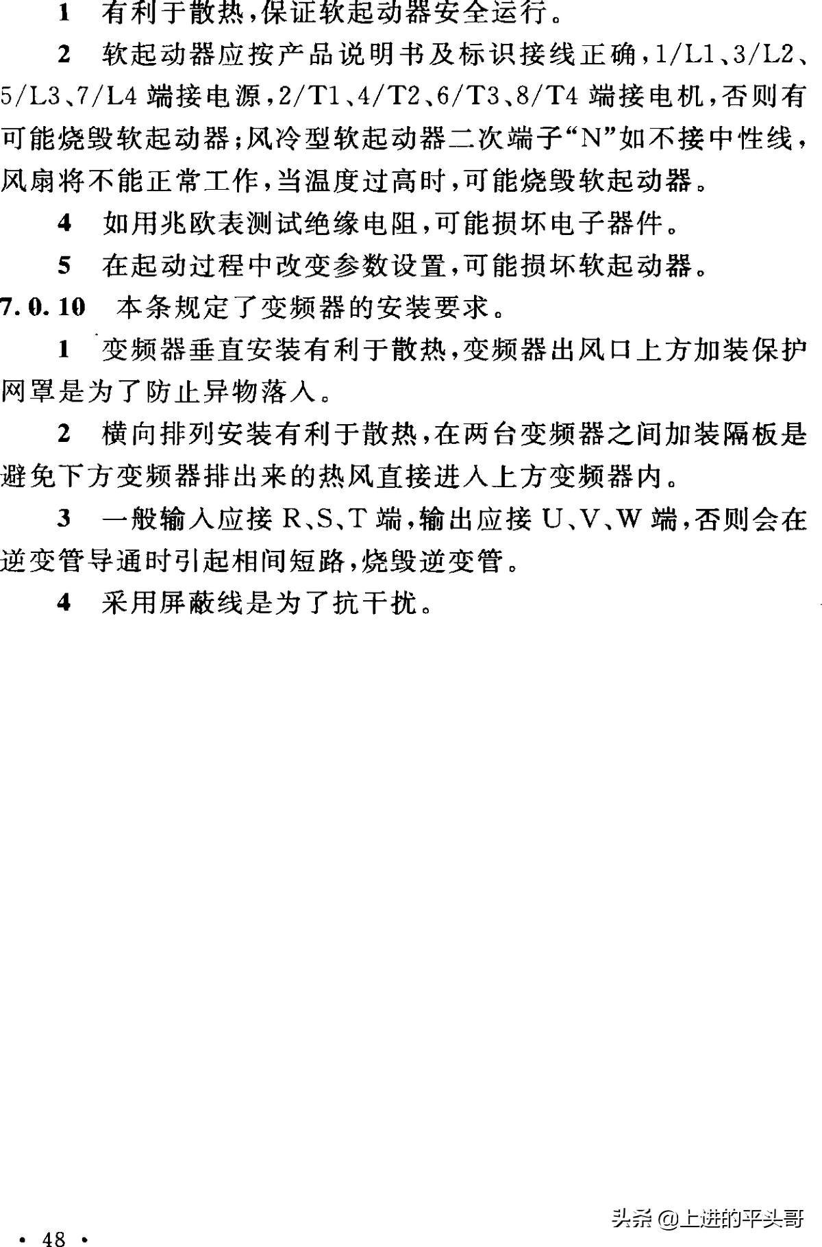 7 . 0 . 1 0 本条规定了变频器的安装要求。