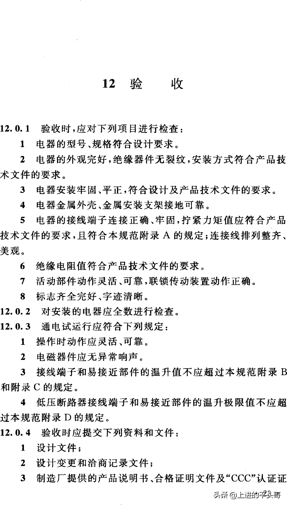 12. 0 . 1 本条所列要求是低压电器安装验收应检查的项目,是试运行前应该达到的基本要求。