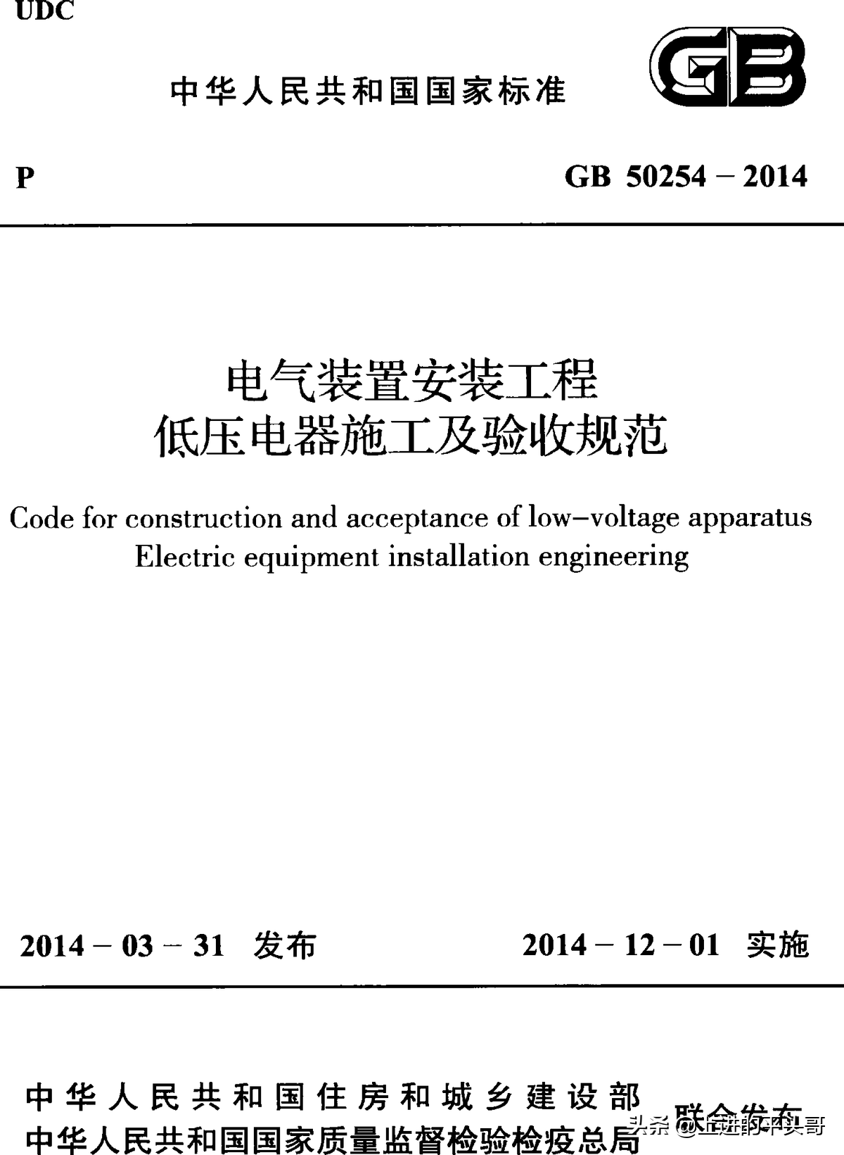 电气装置安装工程 低压电器施工及验收规范(GB 50254 - 2014)