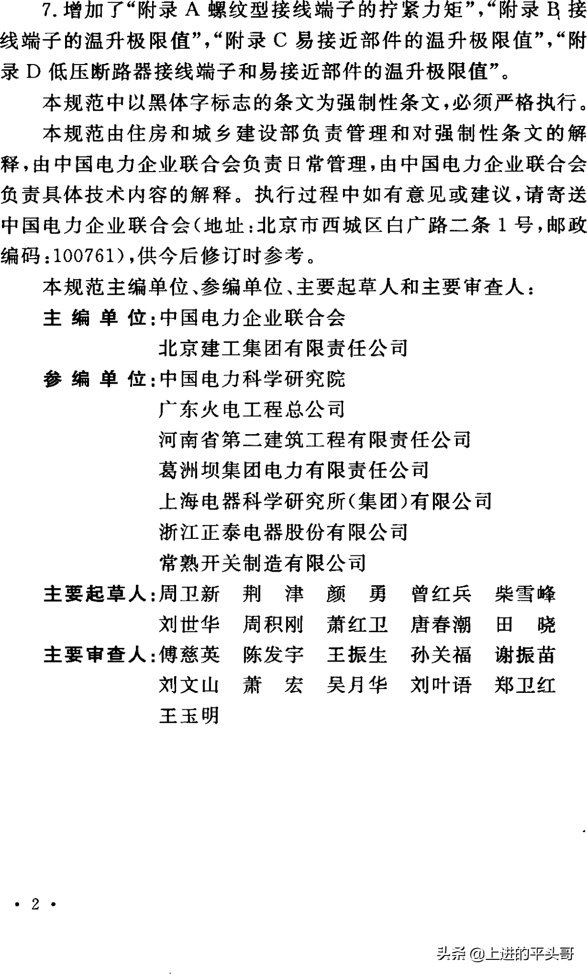 本规范主编单位、参编单位、主要起草人和主要审查人: 主 编 单 位 :中国电力企业联合会