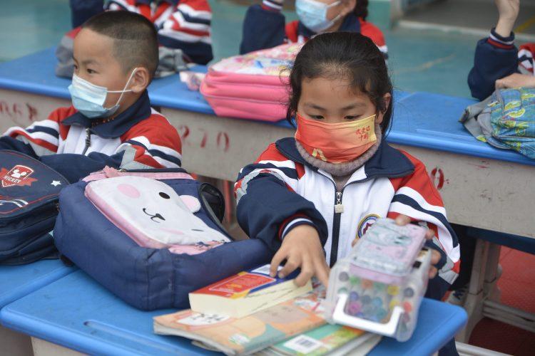 2022年3月30日,邯郸市邯山区张庄桥小学开展劳动技能大比拼活动,学生们正在整理学习用品。 图/视觉中国