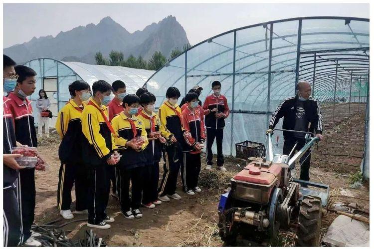 5月4日,承德县第二中学开展了以劳动教育为主题的团日活动,团员们正在了解农机具的使用,学习除草、翻土。