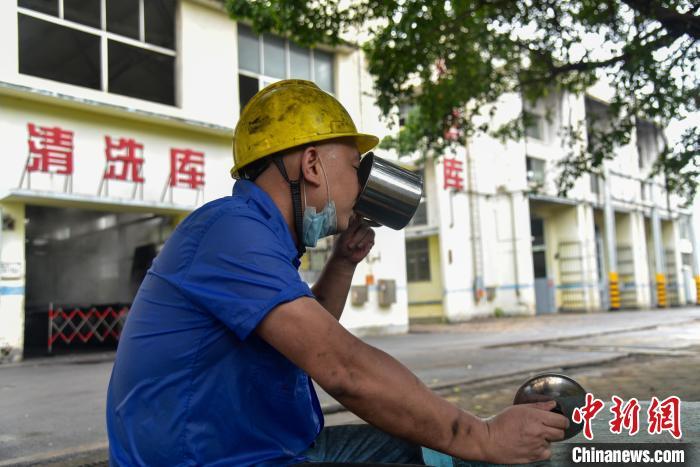 在高温蒸汽下工作,杨俊满头大汗,眼镜也蒙上了一层水雾。 王以照 摄