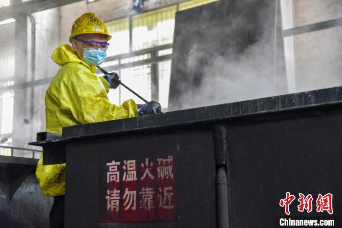 杨俊每天的工作都必须面对火碱蒸汽。 王以照 摄
