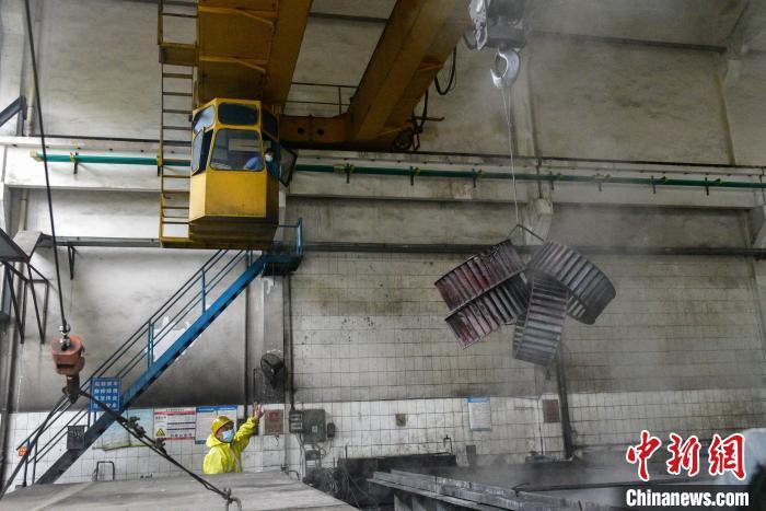 杨俊指挥吊车司机将配件吊至清洗地点。 王以照 摄 6月29日下午,广西柳州机务段的检修车间内,职工杨俊正在对火车头各部件进行清理。在铁路运输中,火车头达到一定运营期限后,要分解各个部件进行检修。在清理环节,需要将分解出的部件放入有火碱成分的高温液体中浸泡蒸煮,被称为“蒸桑拿”,从事清理工作的工人就是配件的“桑拿师”。为在气味略显刺鼻的车间工作,陈俊必须穿上防护服,戴上口罩和护目镜工作。 正值暑运,穿着防护服在蒸汽缭绕的车间中工作,杨俊从内到外均被汗水湿透,护目镜也蒙上蒸汽,必须反复擦拭。柳州机务段管理着300余辆火车头,负责的线路多在广西北部的山区中。尽管工作条件艰苦且危险,但杨俊所在的班组工作从不打折扣,保证铁路运输的安全。(完)