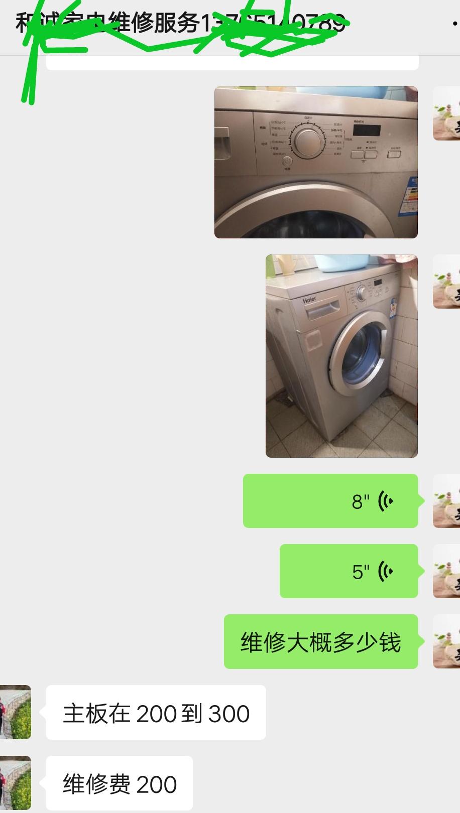 旧房出租给2个美女住快半年了,春节放假回家都还没回美女就电话说洗衣机不能用,冷天厚衣服手洗太难,一直催我找人去修,就网上查了附近维修家电的请帮忙看,说了插电显示屏闪一闪的,他就说可能是主板坏了,价格要800元,当时没敢答应,想到还没过完元宵节,估计他们搞维修的也要收“春运费”,6年的海尔滚筒洗衣机二手都才300左右,囊中羞涩啊,800元果断放弃。等过完元宵节回来亲自上门通电看了看,门外汉就发现屏幕闪,再用40多年的嗅觉到处探了一下,“没毛病”,又问她们是怎么坏的,她就说洗着突然停了,我突然对视美女3秒,她脸红了我笑了,说:我也不知道哪里坏。望闻问切都用了,还是得找厂家专业人帮忙,400800……全部服务电话打过去,服务很好说马上安排贵阳售后维修过来,此时我还是担心再来个800我承受不起啊,,10分钟左右维修帅哥电话来了,沟通后他也不说大概多少钱,就说要来检查在说,想到售后维修价格比其他的都贵,没敢马上要他来,就支付宝上又找了一家全国服务的家电维修店,那修理工速度就像等情人约会一样的着急,骑着小毛驴30分钟就来了,拆机一看就说主板烧了,准备谈判[呲牙]又怕800(没钱人的心态[抠鼻]),他打通电话跑楼下说了一会进来就说修好600元,我心里价格就300以下,就当买一台二手机。咔嚓,发了一支烟,热茶奉上说,兄弟300以下能干么。这是公司规定有材料费上门服务费价格少不了多少,最多给我少点服务费50元,他说的。没法,“谈判”失败,他说很忙还有几家要去维修给他30元路费就走了。想到网上联系不行又找附近搞维修的,春节过了价格应该回归正常,又找了邻居要了2家附近维修工电话,加微信发照片说主板坏,他们开始不报价格,先问 找其他人修过没 别人报多少钱 机子用几年了,最后下来都没一个低于400的维修。没法,我上网找了洗衣机维修视频拆机视频一看,病因明确,换配件很简单,马上就看型号买主板,80元买来带上工具就干。30分钟全部搞好。租房美女问我是做什么工作的,我说我是执业药师,看病配药10多年了,现在做厂家代理。她还不相信→_→。现在药品销售也不好做啊,天天为收欠款发愁,看他们这样搞家电维修投资小还利润老高了,一天能有5家客户都收现款,那日子过得滋润啊,没应酬还不用担心库存什么的,轻松多了。你们说,可以改行不一边搞维修顺便给客户看看病开开药[酷拽]