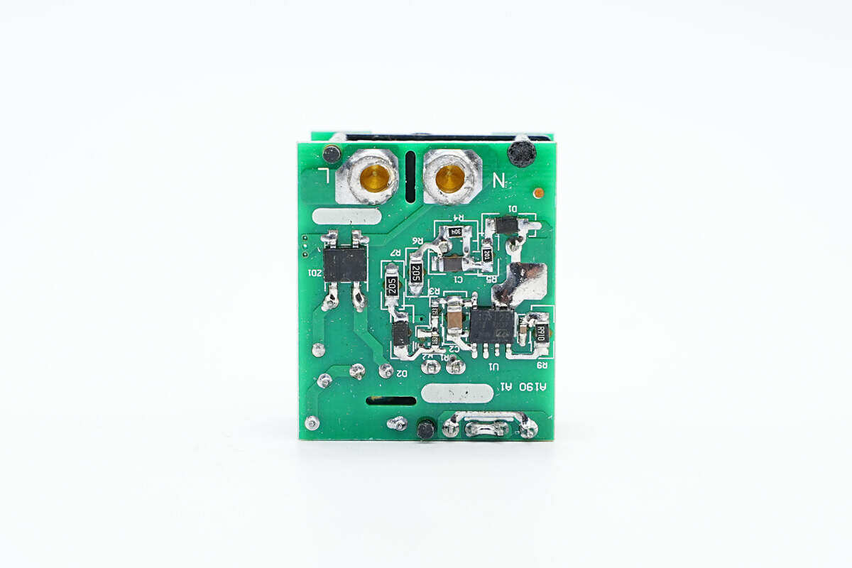 充电头网通过拆解了解到,这款充电插座模块内部使用原边反馈电源芯片搭配同步整流芯片组成,内部电路十分简洁。模块由两片PCB焊接组成,分别采用美思迪赛MC1129初级电源芯片搭配晶源微CSC7720同步整流芯片,输出使用固态电容滤波,可以满足一般小功率设备的供电。