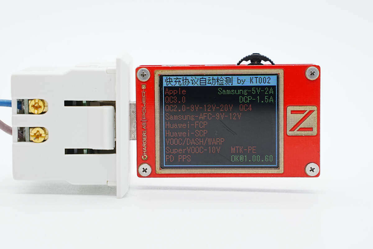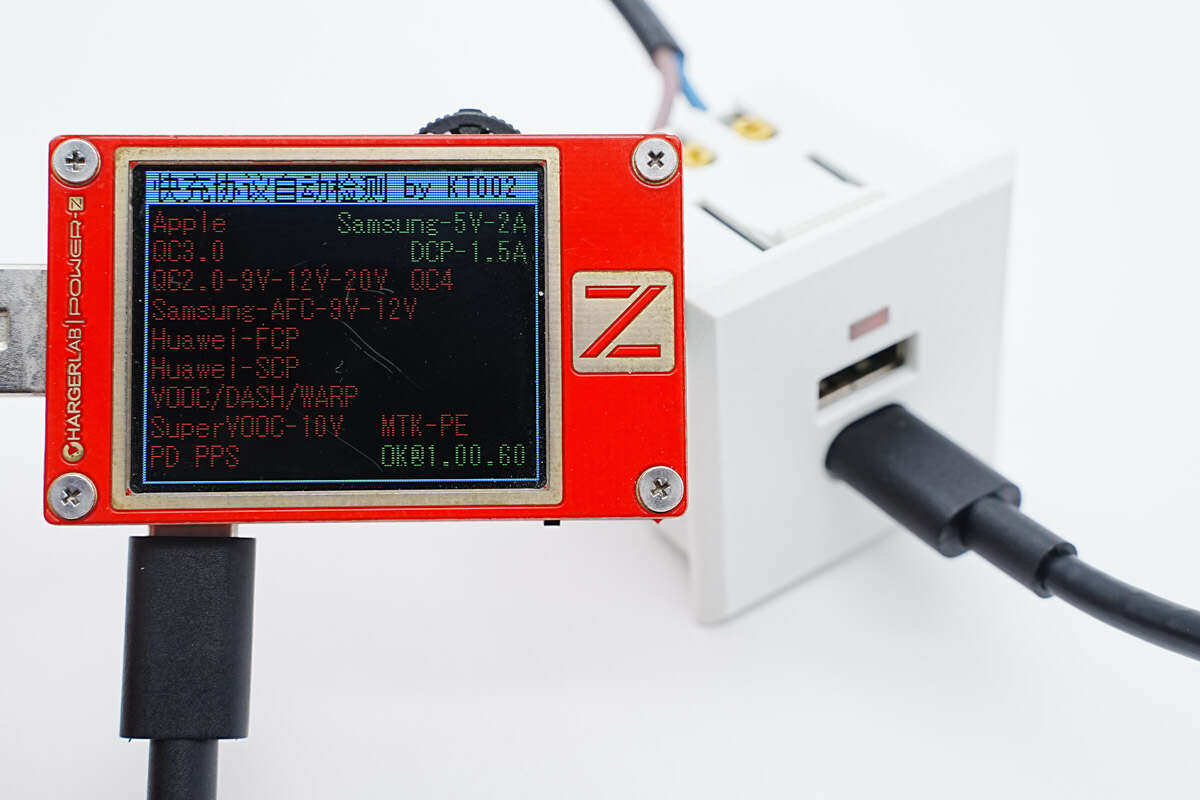 使用ChargerLAB POWER-Z KT002测得USB-C口支持Samsung 5V2A、DCP充电协议。