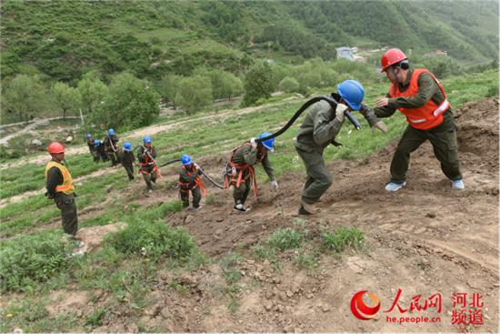 涞源县供电公司员工为十八盘村架设供电线路。 翟文涛摄
