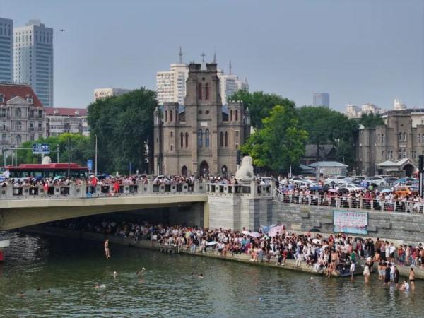 近日,“天津跳水大爷”火爆全网,跳水地点狮子林桥也成了网友热门打卡点,不少人纷纷“进津赶跳”,但同时也带来一些安全问题。