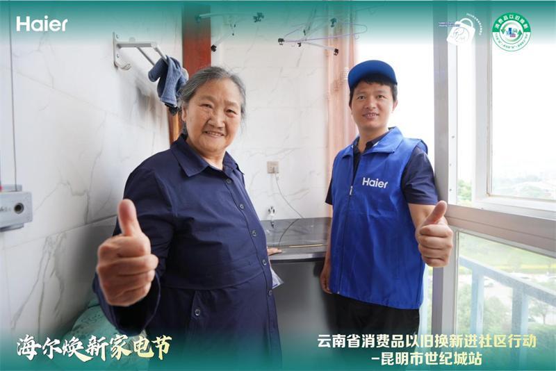 针对昆明市世纪城小区的居民,海尔智家云南分公司联合昆明日日佳海尔专卖店,推出了包括免费上门回收旧家电、清洗家电在内的专属服务,并提供单台最高2000元的换新补贴。活动期间,参与以旧换新小程序并完成换新的用户,还有机会每周抽取免单大奖,最高可达1万元。