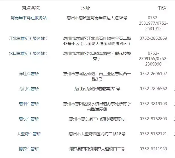 惠州生活通讯录