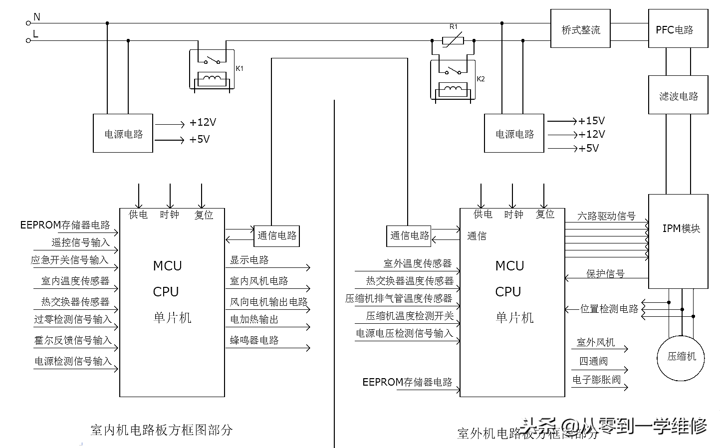 变频空调基础知识、看懂变频空调内外机电路结构方框图