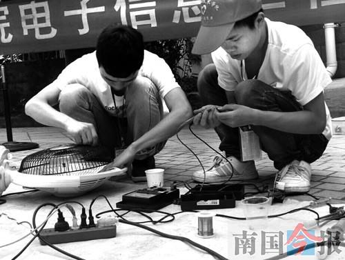 进入社区开展大型志愿服务活动的次数毕竟有限,为了更好地服务广大市民,家电维修部还专门在校园内设置了一个值班室,每天安排人员接收市民送来的故障电器。另外,对于一些行动不便的老人,维修部还提供上门服务。