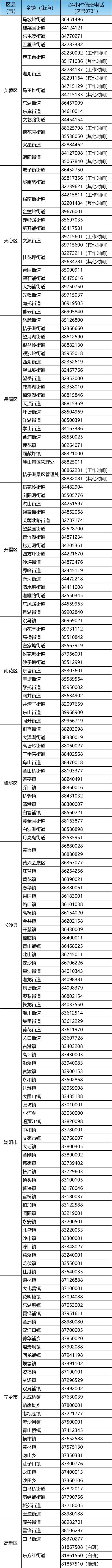 长沙市各乡镇(街道)值班电话