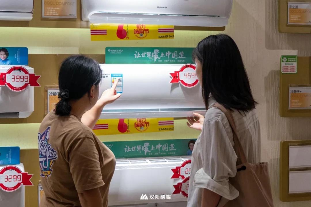 “参加完以旧换新和厂商促销活动后,家里同品牌旧空调还叠加抵扣270元,原价3799元的‘凉之静’1.25P的变频空调最终2729元拿到。”在格力电器汉商21世纪店内,顾客王女士对此次以旧换新活动非常满意。