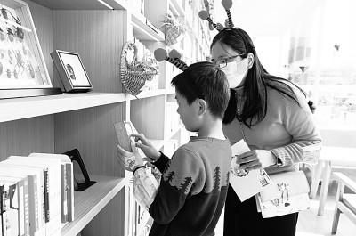 上海首家郊野公园书房内,小朋友在家长的陪同下观看动物标本。新华社发