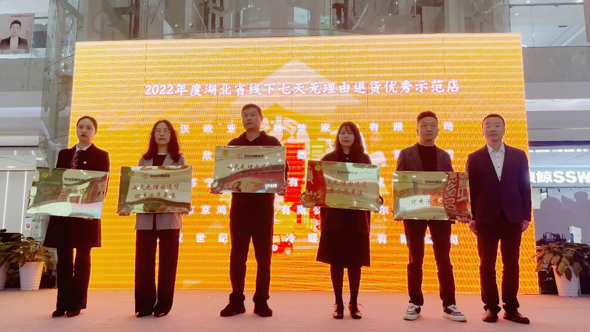 活动现场,湖北省消费者委员会还为包括武汉欧亚达雄楚家居有限公司等在内的多家线下实体店不理由退货优秀示范店和教育消费基地授牌。