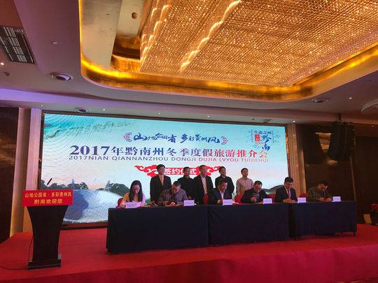 12月22日,黔南州带着420万各族人民的饱满热情,在成都举办了“山地公园省·多彩贵州风”2017贵州冬季度假旅游推介会,暨“生态之州•幸福黔南”2017黔南州冬季度假旅游专场推介,在第一时间向成都的朋友们送出了黔南冬季旅游的“大礼包”,诚挚邀请大家在2017年冬季畅游黔南。