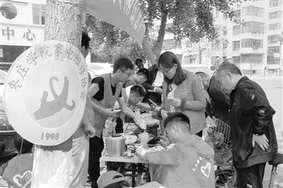 参与此次活动的志愿者大部分是枣庄学院的在校大学生,他们利用课余时间为社区居民免费维修小家电的优良传统,已经坚持十多年了。活动当天,服务站的“生意”十分火爆:不烧水的电热壶、转不动的电风扇、乱跑台的收音机……居民们纷纷把家里“罢工”的小家电送来“问诊”,甚至小朋友的遥控汽车、电动飞机也在“待修”之列,身穿红马甲的志愿者们被围了个里三层外三层。