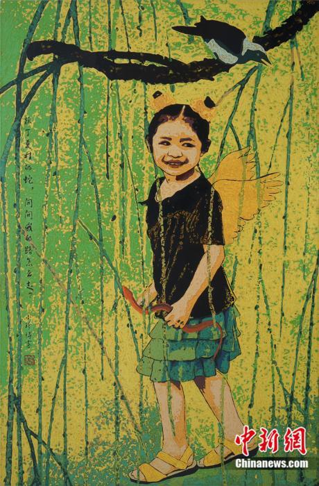 未明漆画作品《向宋画致敬!—童真年代之二》。受访者供图