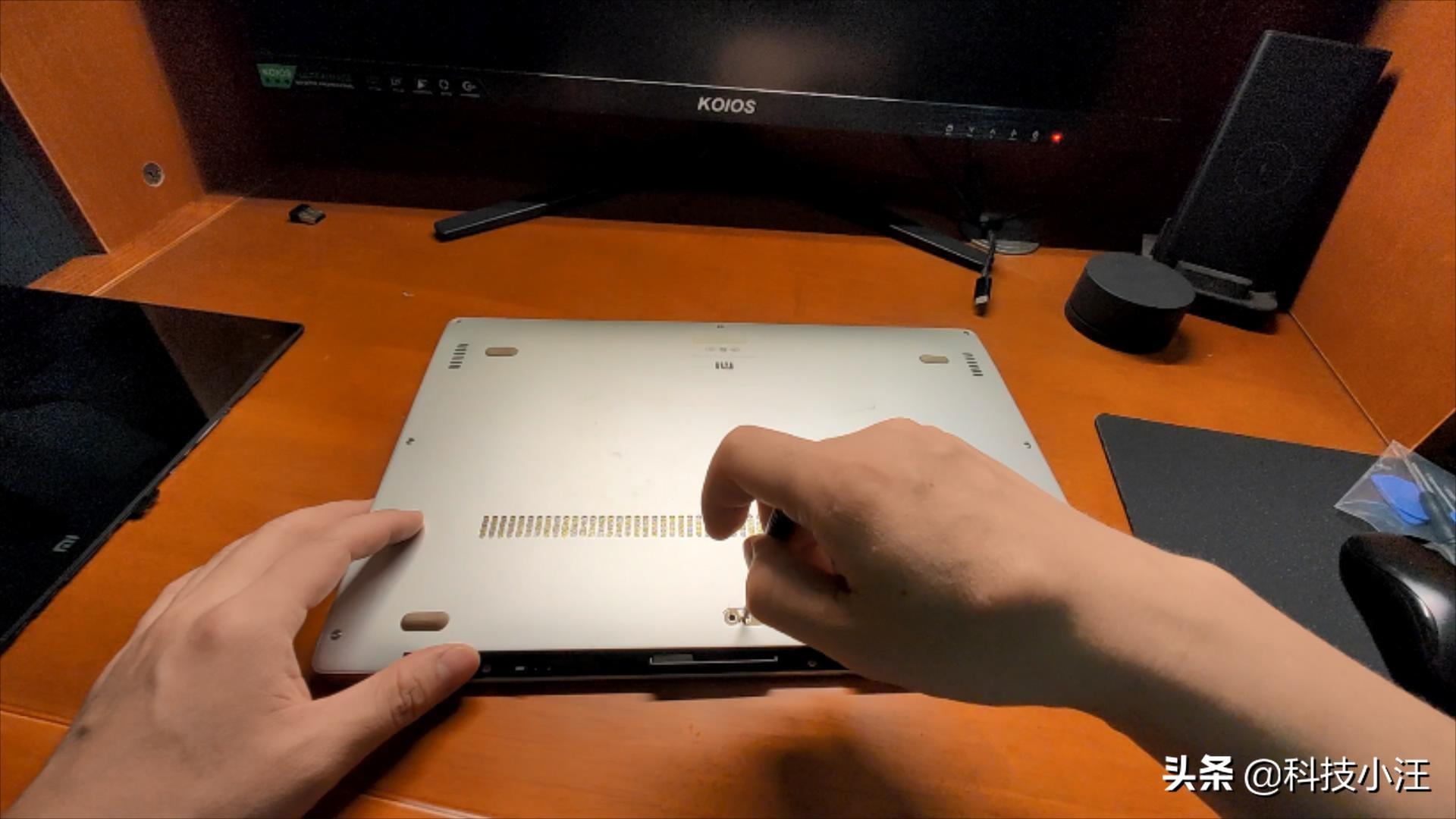 ▲先拆解小米笔记本底部的8颗内六角螺丝,在购买屏幕总成的时候,商家在快递里附送了拆机工具,非常贴心。拆掉底盖的8颗螺丝以后就可以取下底板。