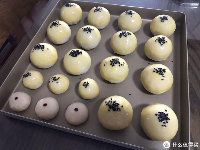 这样夹花烤也是没有问题的!我做豆沙排的时候发生意外。。。豆沙不够了。哈哈哈哈。面皮多出来了。所以剩下的面皮只能现做椰蓉做成椰蓉球。两者因为冰皮一样。烤纸的温度和时间也是差不多的。所以可以一起来~