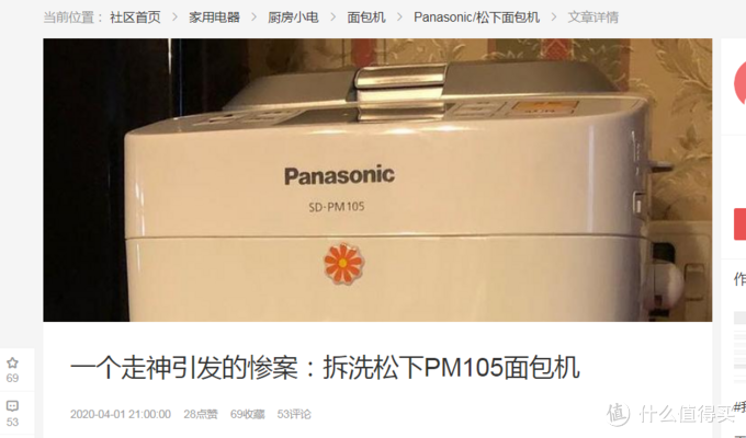 接着还要就是易拆卸!因为这样万一有个闪失!好打理!我看到站里有个亲,他是松下105的面包机。做面包的时候没放内胆。晴空霹雳啊!