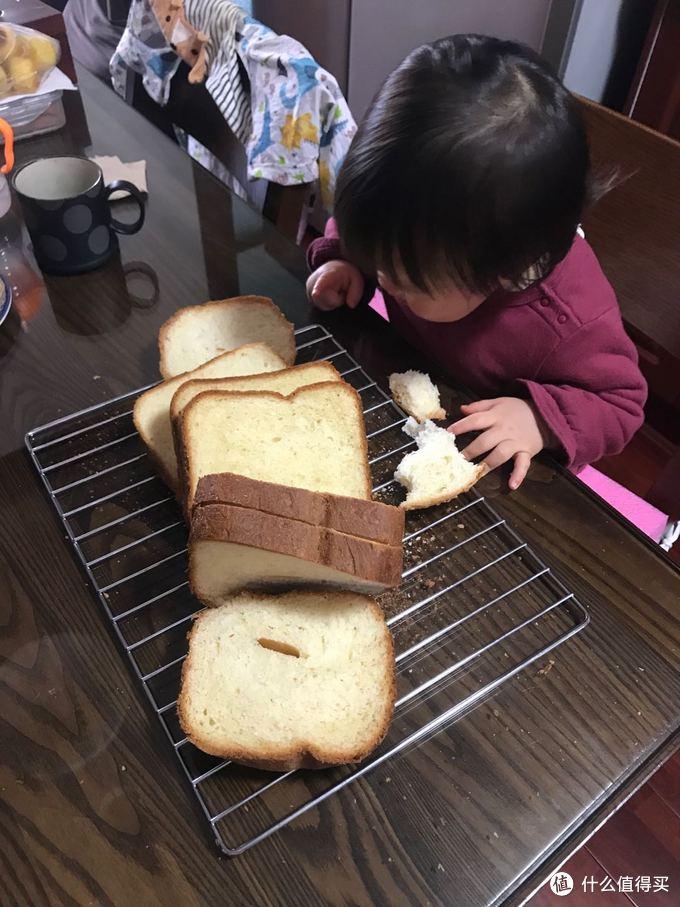 但是!友情提示!面包机做出来的面包基本两天里面要吃掉。因为不含添加剂。刚刚出炉的真的很好吃!小朋友都会埋头捡桌子上的渣渣吃。但是如果放了2天以上。基本还是会变的比较比较干的。