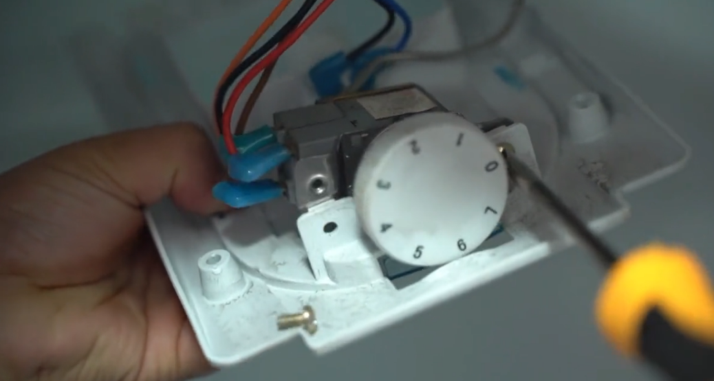 接下来就是更换温控器,一般冰箱的温控器都是通用的,如果家里的温控器坏了,可以买一个温控器的配件,直接更换就可以了。更换的步骤也比较容易,打开之后,我们可以看到一些红黄蓝各种颜色的线路,这个时候如果你不太清楚的话可以用手机拍一张线路图 ,以防在回装的时候接错线。