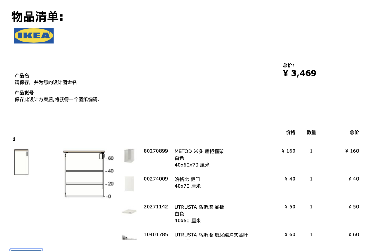 ▼第二是,毕竟自己住要住不短的时间,换个新的橱柜还是更方便的。宜家的橱柜可以自己设计,控制预算,我这次橱柜部分只花了3500元左右,还有25年的长质保,用着也放心。宜家网站上有橱柜自主设计软件,不仅可以设计,还能生成详细的价格清单,由于是模块化,面板、台面、拉手等都可以自主选择,便于控制成本。
