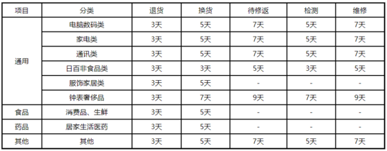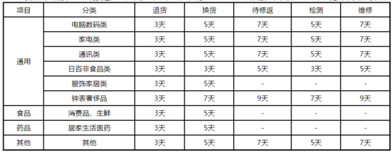 不仅如此,若消费者在签收开箱时,发现商品存在破损问题,供应商应在接到京东通知后,于规定时间内更换相同型号新品,具体服务时效要求详见下表: